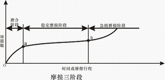 在目前的機(jī)械設(shè)備故障診斷領(lǐng)域中,鐵譜分析方法的概念實(shí)際上已在無(wú)形中轉(zhuǎn)變?yōu)橛蜆幽p殘余物的分析了。磨損、疲勞和腐蝕是機(jī)械零件失效的三種主要形式和原因,其中磨損失效約占80%左右,由于鐵譜分析方法對(duì)磨損監(jiān)測(cè)的靈敏性和有效性,因此這種方法在機(jī)械故障中日以顯示其重要地位。通過(guò)鐵譜分析對(duì)特定摩擦學(xué)系統(tǒng)的潤(rùn)滑和磨損狀態(tài)進(jìn)行合理評(píng)估,是油液監(jiān)測(cè)活動(dòng)的核心內(nèi)容。機(jī)器設(shè)備運(yùn)行狀態(tài)在使用過(guò)程中磨損狀況一般可以分為三個(gè)階段(如圖所示),