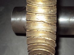 通過檢查發(fā)現(xiàn)減速齒輪已發(fā)生嚴重的異常磨損(圖2)。由于該減速機還在保修期內(nèi),于是通知廠家更換了新的蝸輪減速齒輪,避免了安全事故和減少了經(jīng)濟損失,目前工作正常。