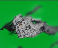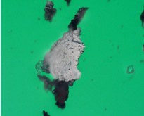 進一步應(yīng)用分析鐵譜儀制作了譜片,對油樣作定性分析。在譜片上可以觀察到有鐵磁性磨粒存在,磨粒多數(shù)是層狀磨粒和疲勞剝落磨粒(見圖4、5),層狀磨粒尺寸在80×30微米左右,磨粒大多數(shù)呈藍紫色,且最大尺寸150微米以上的有齒輪表面疲勞磨損剝落的產(chǎn)物,它具有光滑的表面和隨機曲折的輪廓。通常情況下受拉伸應(yīng)力較大的摩擦副表面,如齒輪的輪齒容易產(chǎn)生片狀疲勞剝離磨粒。