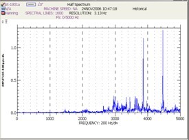 為了進一步確認機組的狀態,他們再次測量軸承的振動加速度,在振動加速度頻譜圖上發現了軸承故障產生的高頻振動信息(圖3)。