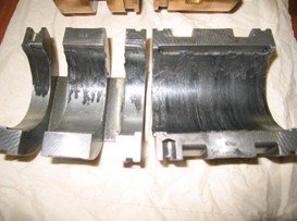 綜合油液監測分析和振動分析的結論,可以斷定透平驅動端軸承出現了異常的磨損故障。透平停機拆卸軸承后發現,軸承內表面已經嚴重磨損(圖4)。