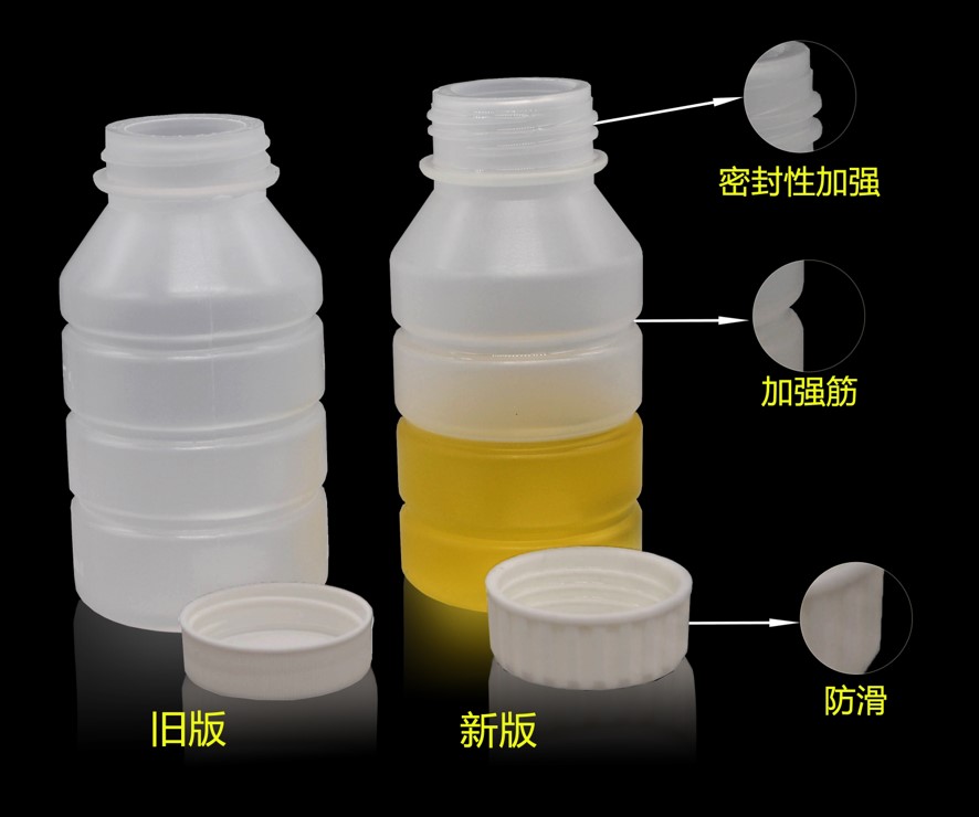 2、塑料材質,與航空液壓油、燃油和滑油均相容,耐溫不低于160℃。瓶身白色半透明,清晰可見瓶內液位。